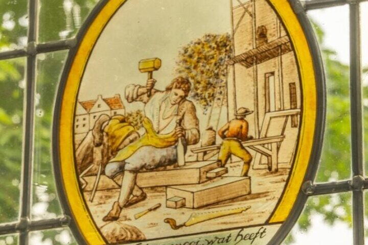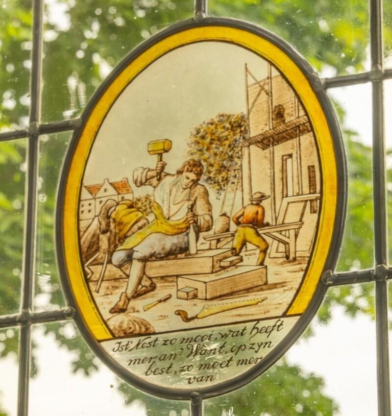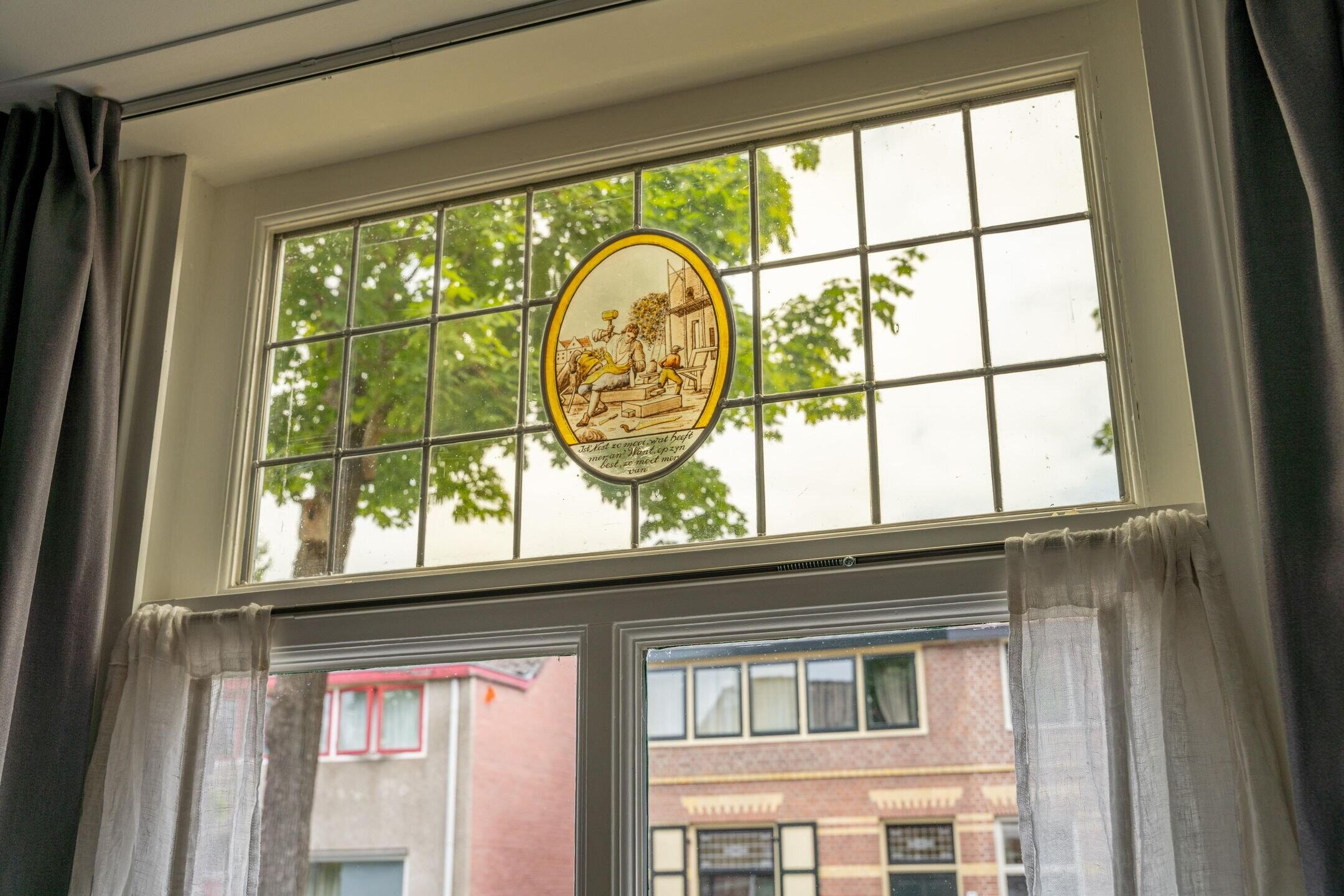 • Karakteristieke glas-in-loodramen aan de voorzijde.