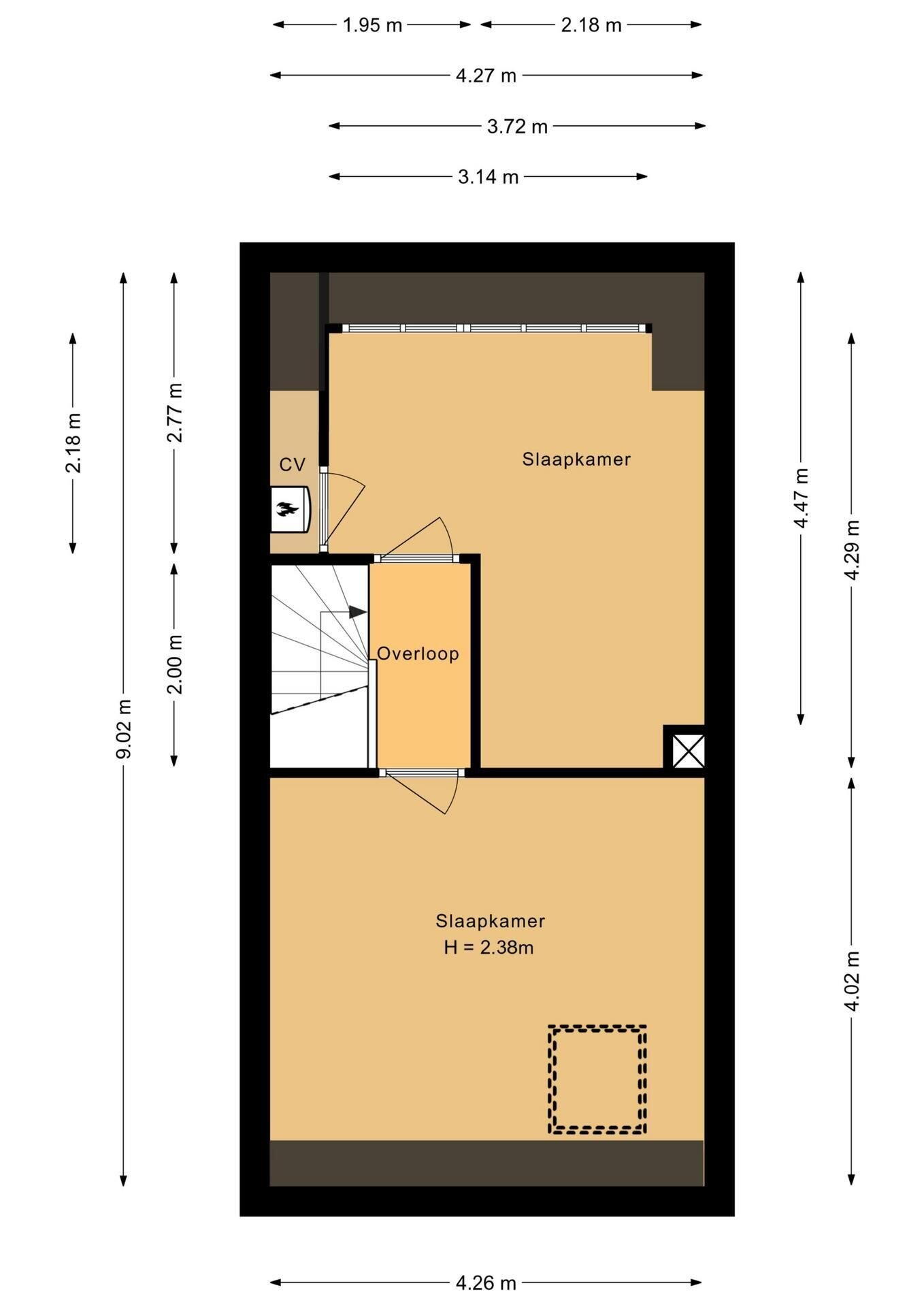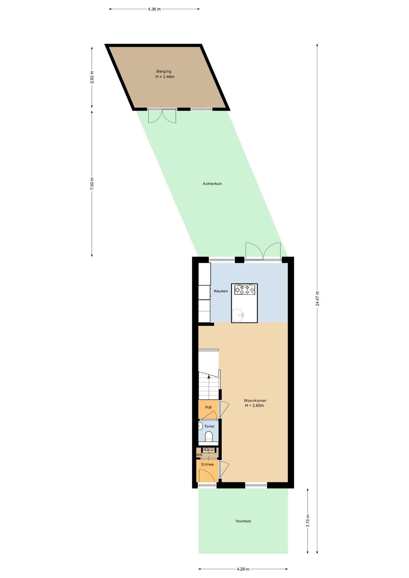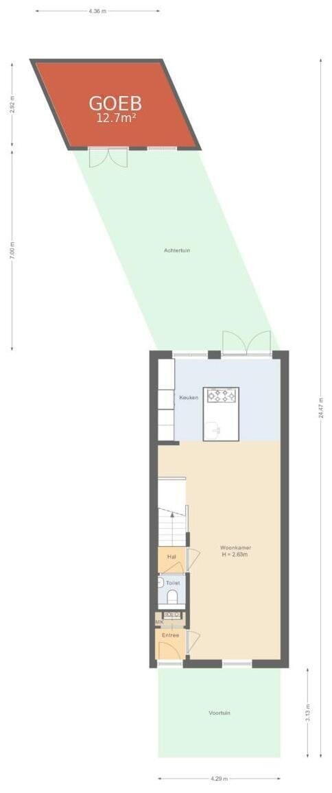 - 30 m² (7,00 meter diep en 4,35 meter breed)