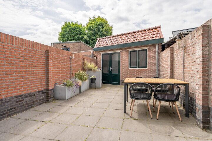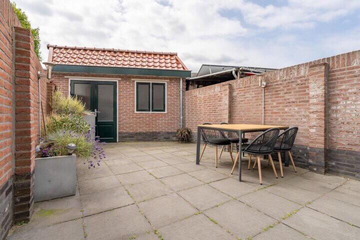 De onderhoudsvriendelijke achtertuin is gelegen op het zuiden en biedt de hele dag zon. De tuin is volledig betegeld en beschikt over een vrijstaande stenen berging met openslaande deuren, handig voor fietsen en extra opslag.